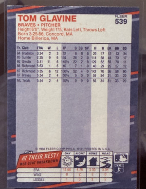 1988 Fleer Tom Glavine #539 (RC)
