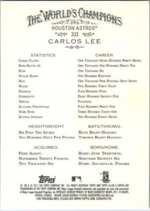 2011 Topps Allen & Ginter #333 Carlos Lee Code Cards