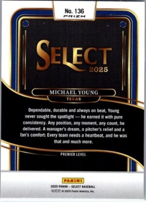 2025 Panini Select #136 Michael Young Red Flash Prizms #/149