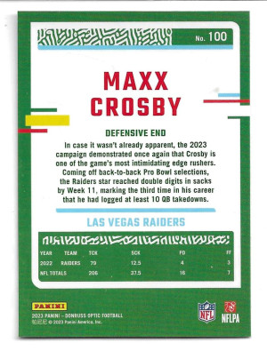 2023 Donruss Optic #100 Maxx Crosby - Las Vegas Raiders