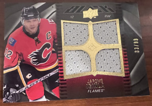 2009-10 Jarome Iginla Upper Deck UD Black #5 4 Jerseys quad patch /99