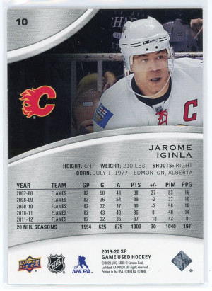 2019-20 SP Game Used #10 Jarome Iginla Rainbow /275