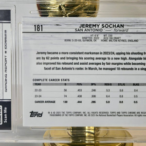 Jeremy Sochan - 2024-25 Topps Chrome Silver Prism Refractor #181 CG3 9.0 Spurs