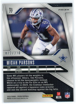 2024 Panini Prizm #77 Micah Parsons Blue Wave 72/230