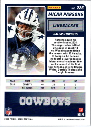 2025 Score - Zoned In Micah Parsons #ZON-41 Jerseys (MEM)