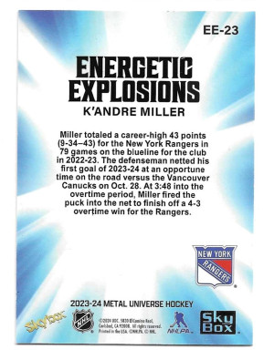 2023-24 Metal Universe Energetic Explosions #EE23 K'Andre Miller - New York Rangers