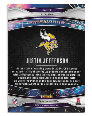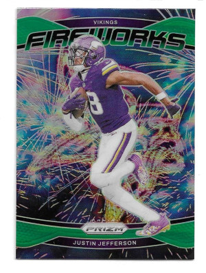 2024 Panini Prizm Fireworks Prizms Green #8 Justin Jefferson - Minnesota Vikings