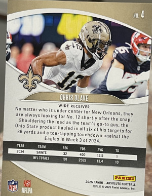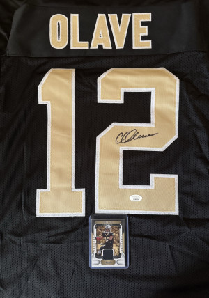 Chris Olave Signed Jersey With A 2022 Panini Absolute Rookie Memorabilia Card Arm-9