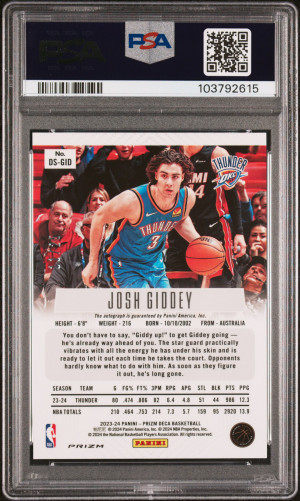 2023 Panini Prizm Deca Signatures Josh Giddey Auto Green Shimmer FOTL /25 PSA 9