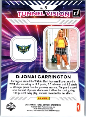 2025 Donruss WNBA #5 DiJonai Carrington Tunnel Vision