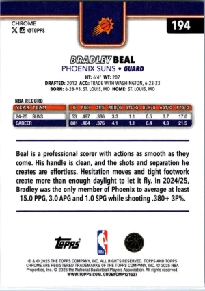 2025-26 Topps Chrome #194 Bradley Beal