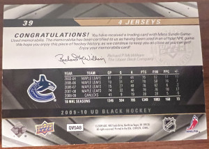 2009-10 Mats Sundin Upper Deck UD Black #39 4 Jerseys quad patch /99