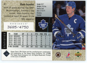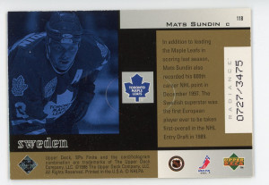 1998-99 SPx #118 Mats Sundin Finite Radiance /3475
