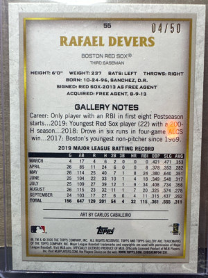 2020 Topps Gallery Rafael Devers #55 Blue Parallel #'d /50 Boston Red Sox