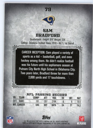 2012 Topps Inception #79 Sam Bradford Green 30/75
