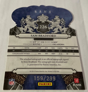 2010 Panini Crown Royale - Sam Bradford #226 159/299 (AU, RC)