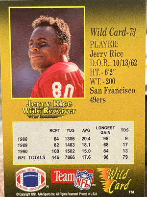 Jerry Rice #8  1993 Upper Deck NFL Experience