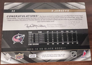 2009-10 Rick Nash Upper Deck UD Black #11 4 Jerseys quad patch /99