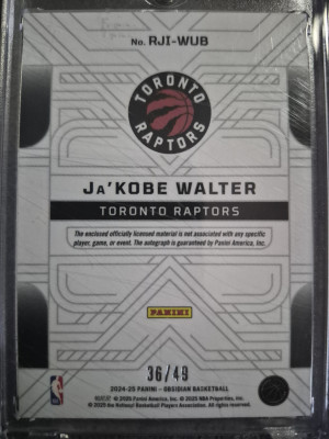 2024-25 Panini Obsidian Ja'kobe Walter RPA 36/49!!