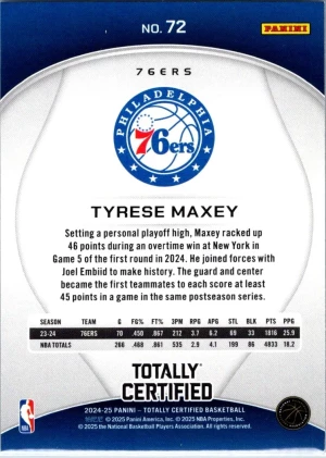 2024-25 Panini Totally Certified #72 Tyrese Maxey