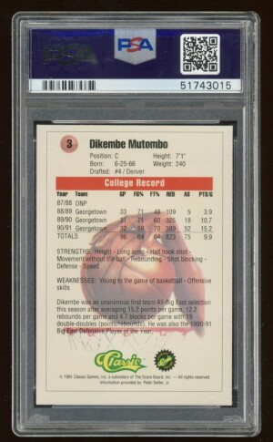 1991 Classic Dikembe Mutombo ROOKIE PSA GEM MINT 10 HALL OF FAME