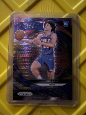 Jared McCain 2024-25 Panini Prizm /99 Blue Pulsar Instant Impact RC 76ers #10