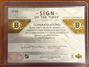06/07 SPA Patrice Bergeron/Phil Kessel Sign Of The Times Dual Autograph (Kessel Rookie Year)