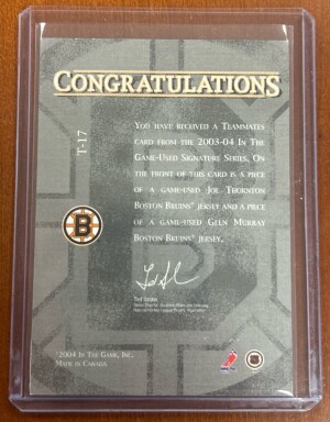 03/04 ITG Joe Thornton/Glen Murray Dual Jersey Card 1/1