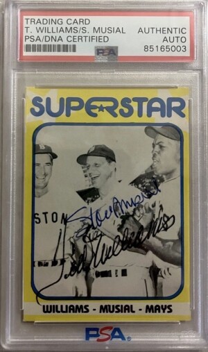 Ted Williams & Stan Musial Signed 1980 TCMA #11, PSA Auth Auto