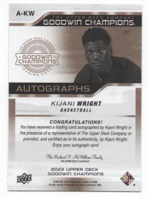 Kijani Wright RC - 2023 Upper Deck Goodwin Champions Autographs #A-KW