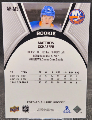 Matthew Schaefer 2025-26 UD Allure Hockey Extended Rookie SP Islanders #AR-MS