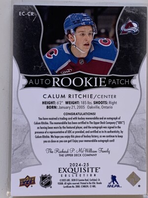 2024-25 Calum Ritchie Exquisite Rookie Patch Auto /71