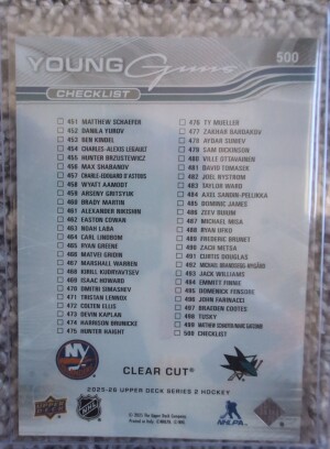 2025-26 Upper Deck Series 2 Young Guns Clear Cut Checklist 451-500 #500
