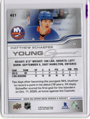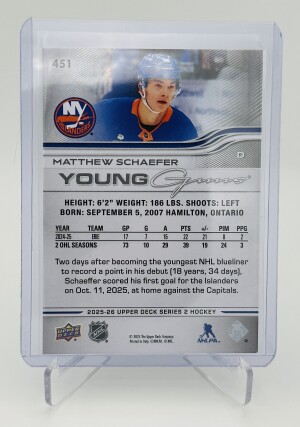 2025-26 Upper Deck Series 2 YOUNG GUNS RC Matthew Schaefer #451