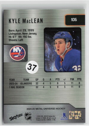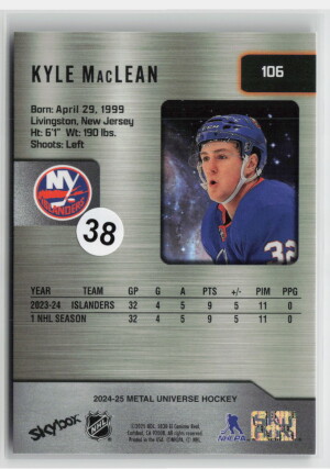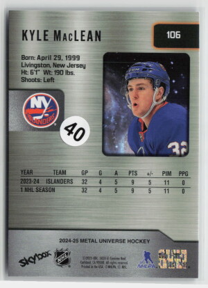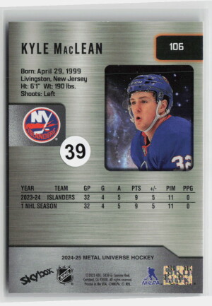 2024-25 Metal Universe Hockey Kyle MacLean #106 Rookie