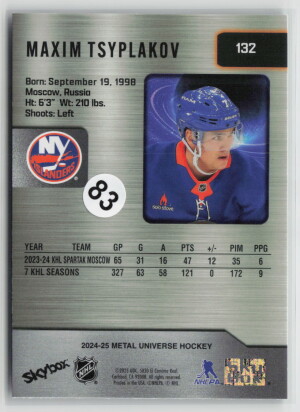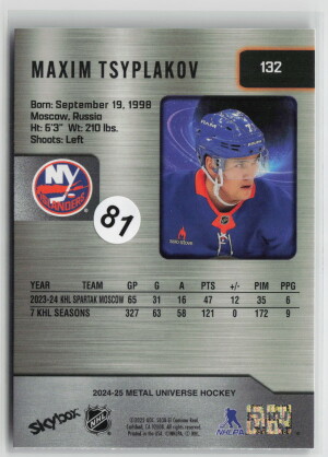 2024-25 Metal Universe Hockey Maxim Tsyplakov #132 Rookie