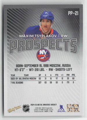 2024-25 Metal Universe Hockey Prospects Maxim Tsyplakov #PP-21