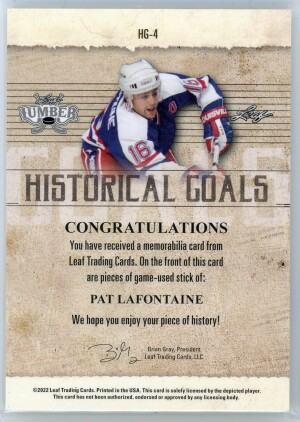 2021-22 Leaf Lumber Pat Lafontaine Historical Goals Game Used Stick 7/9