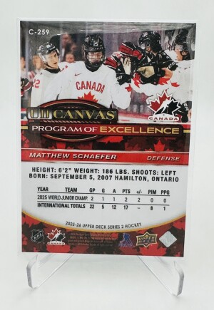 2025-26 Upper Deck Series 2 Matthew Schaefer Program Of Excellence Canvas