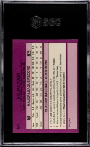 1989 Classic Bo Jackson #157 (SGC 9) Rare Card, Pop. 13, only 8 higher (9.5, no SGC 10s)