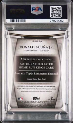 2021 Topps Luminaries Home Run Kings Autograph Patches Ronald Acuna Jr. Home Run Kings Auto.pat.