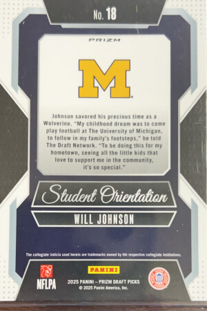 2025 Panini Prizm Draft Picks Student Orientation Will Johnson #18 Green RC