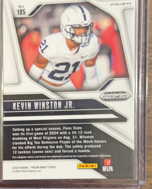 2025 Panini Prizm Draft Picks Kevin Winston Jr. #105 Purple Pulsar RC