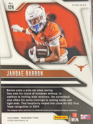 2025 Panini Prizm Draft Picks Jahdae Barron #124 Purple RC
