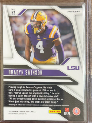 2025 Panini Prizm Draft Picks Bradyn Swinson #52 Green RC
