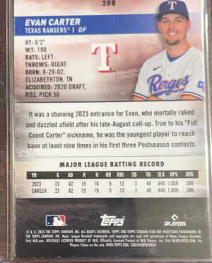 2024 Topps Stadium Club Chrome Evan Carter #208 Orange Refractor /99 RC