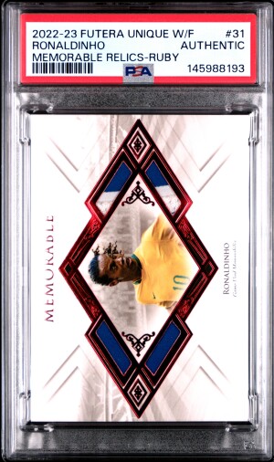 2022-23 Futera Unique World Football Memorable Relics Ronaldinho Memorable Relics-Ruby