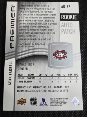 2024-25 UD Premier Rookie Auto Jersey Devin Cooley #PRA-DC /99